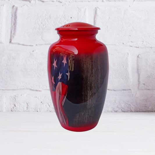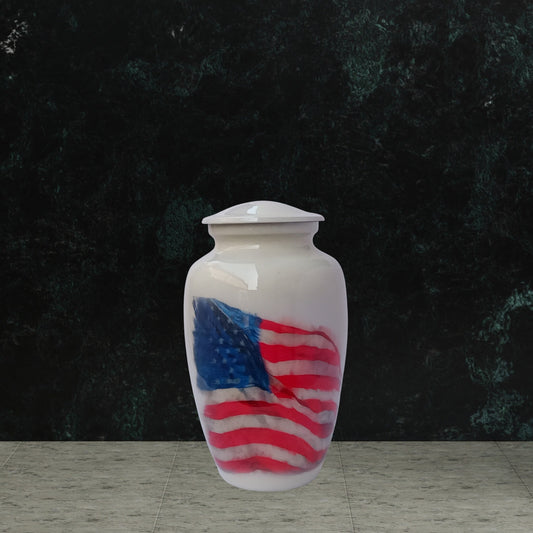 American Flag Patriotic Large Adult Cremation Urn for Human Ashes — With Velvet Bag