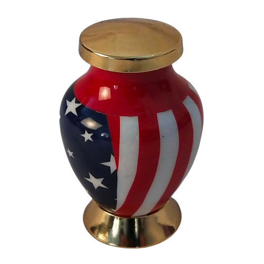 American Flag Mini Keepsake Cremation Urn for Patriots, Firefighters, Navy, Marine, Army, Veterans, & Policemen - Solid Brass, Single Piece