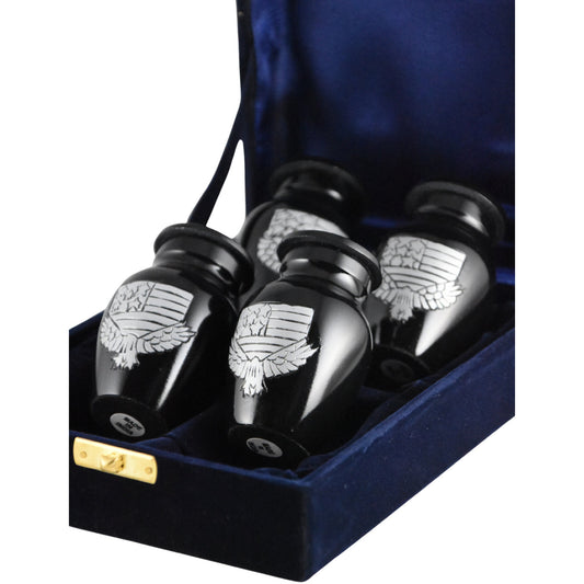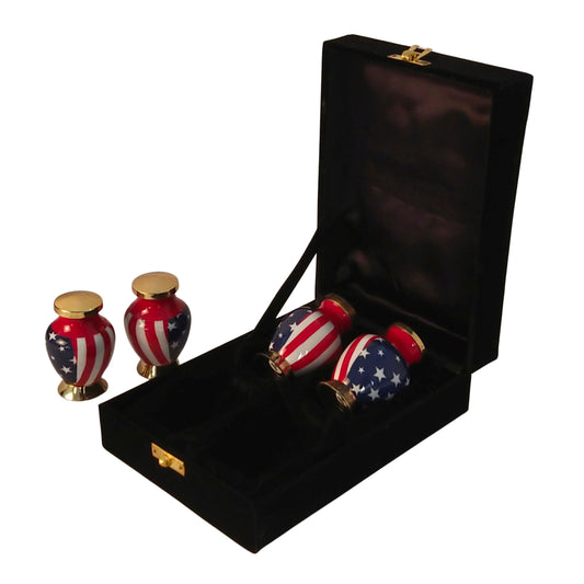 American Flag Mini Keepsake Cremation Urn for Patriots, Firefighters, Navy, Marine, Army, Veterans, and Policemen - with Velvet Box Set of 4