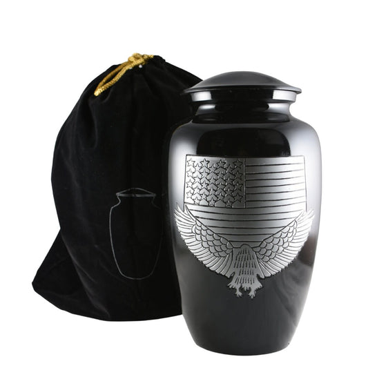 American Flag with Flying Eagle - Silver/Gold/Copper Colored - Urn for Ashes Adult male - Urns for human ashes adult female - Urns - Etched