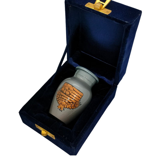 American Flag with Flying Eagle - Silver/Gold/Copper Colored Keepsake Single in Velvet Box for Ashes Adult Male/Female - Patriotic