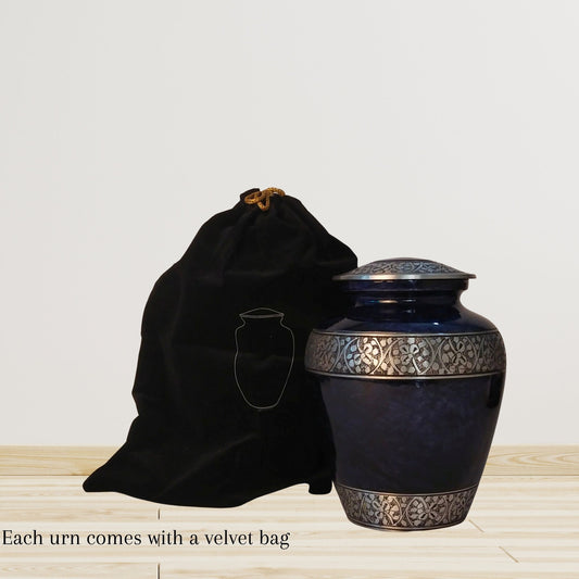Leaves and Flowers Intricate Vine Large Adult Cremation Urn for Human Ashes — With Velvet Bag