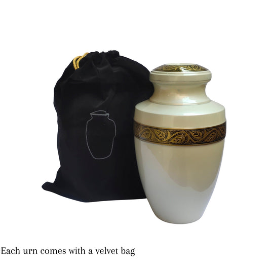 Leaves Metallic Finish Large Adult Cremation Urn for Human Ashes — With Velvet Bag