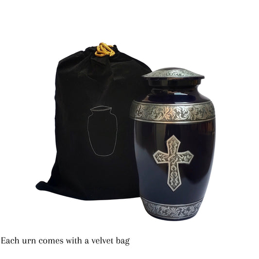 Holy Cross Large Adult Cremation Urn for Human Ashes — With Velvet Bag