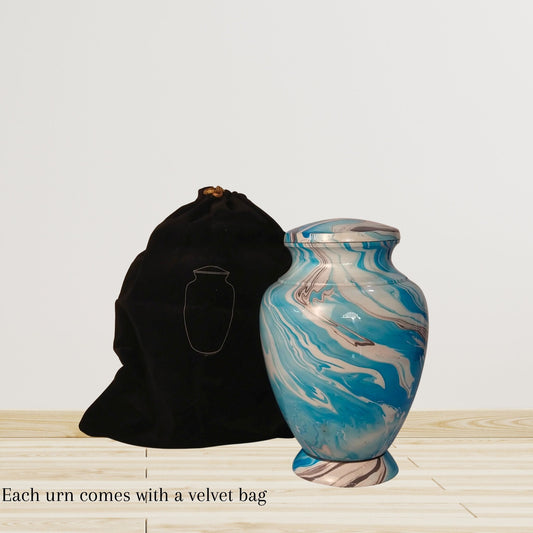 Marble Finish Large Adult Cremation Urn for Human Ashes — With Velvet Bag