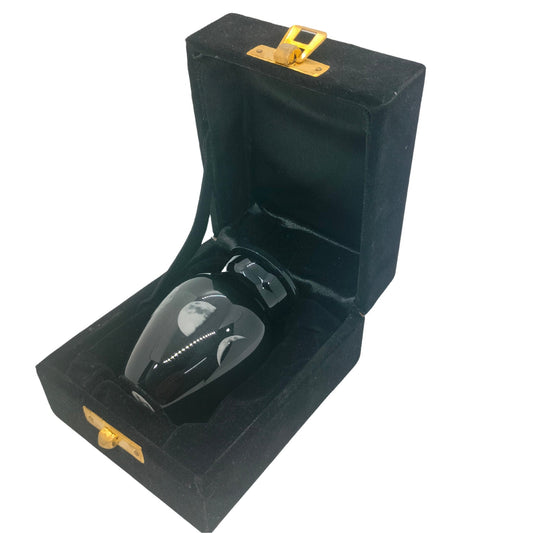 Phases of the Moon - Black Keepsake with different phases of the moon Single Keepsake in Velvet Box - Keepsakes for human ashes
