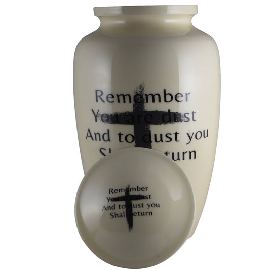 Holy Cross with Remember That You are Dust, And Unto Dust You Shall Return - Beige Urn for human ashes adult male/female - Urns - Spiritual