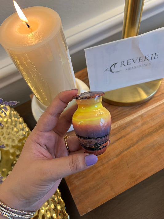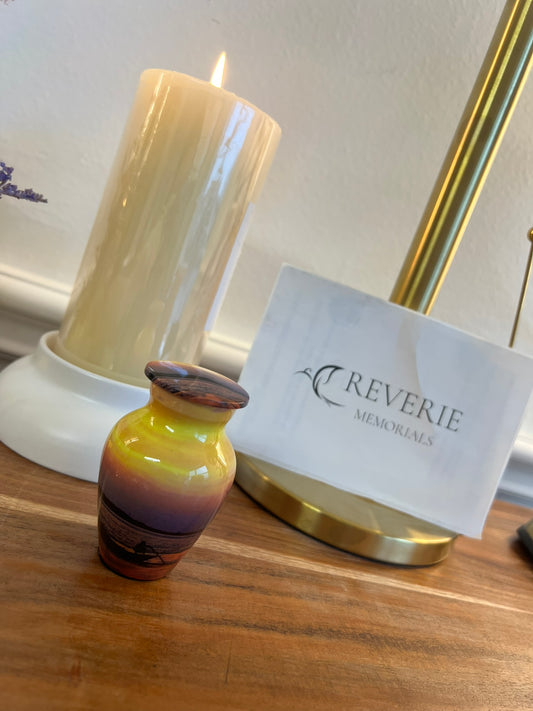 Sunset Orange & Yellow - Man in a boat rowing Keepsake Single in Velvet Box - Ashes Adult male - Keepsakes for human ashes adult female