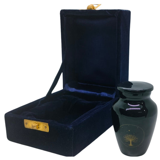 Tree of Life - Black with Golden Tree of Life Keepsake Single in Velvet Box - Ashes Adult male - Keepsakes for human ashes adult female