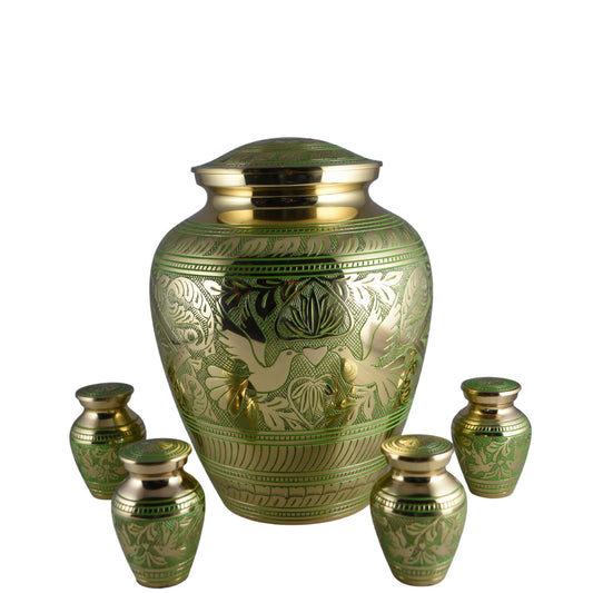 Solid Brass/Aluminum Hand-Etched Doves Large Adult Cremation Urn for Human Ashes — With Velvet Bag