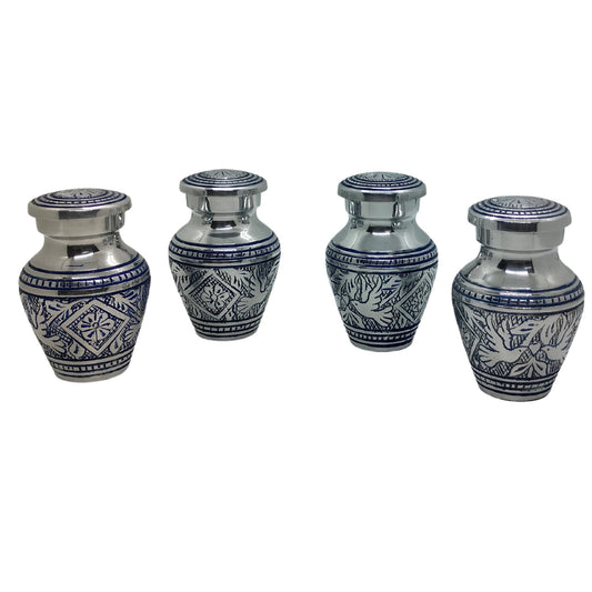 Solid Brass/Aluminum Hand-Etched Doves Keepsakes Set of 4 - Keepsakes for Ashes