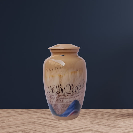 U S Constitution Patriotic Large Adult Cremation Urn for Human Ashes — With Velvet Bag