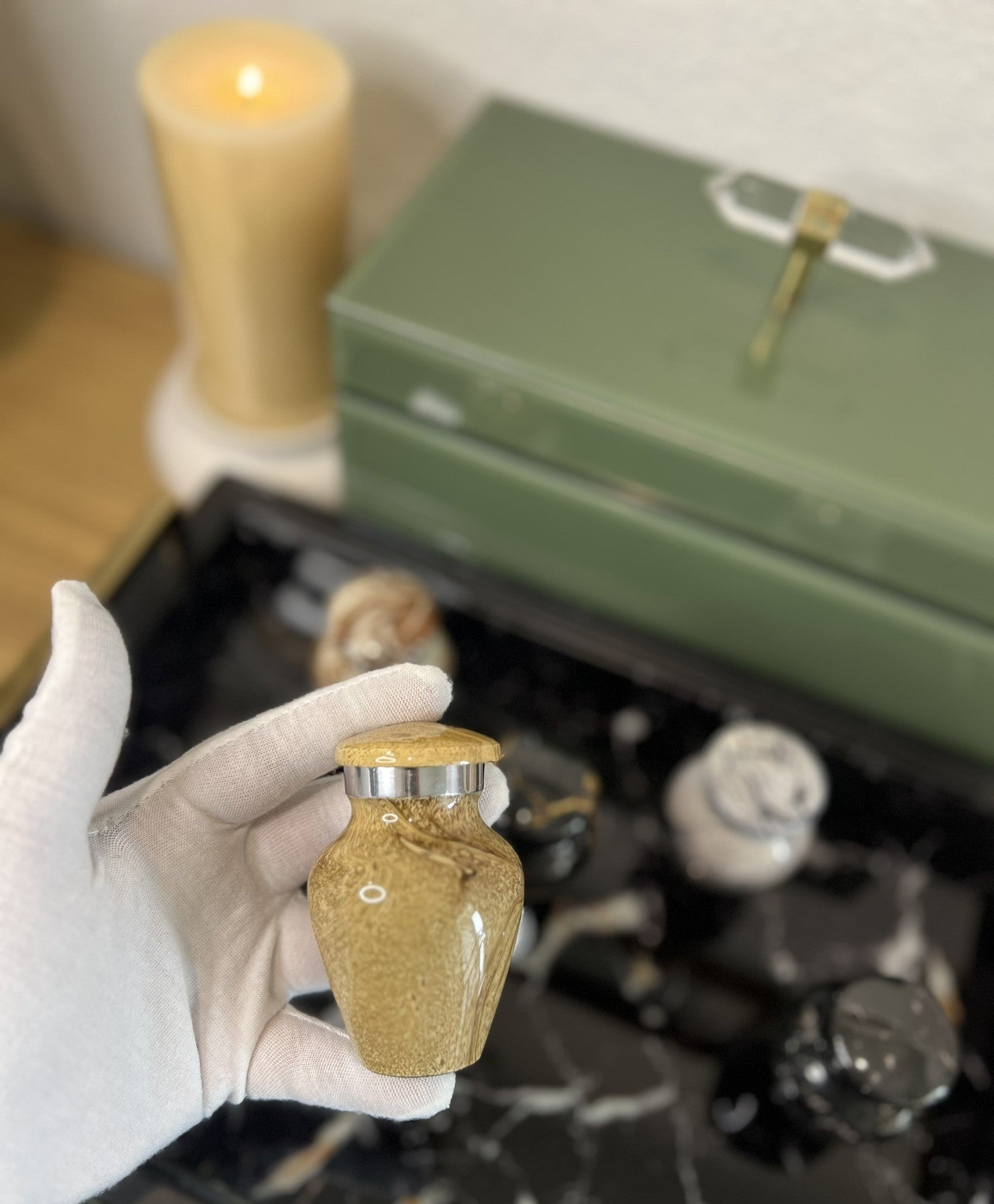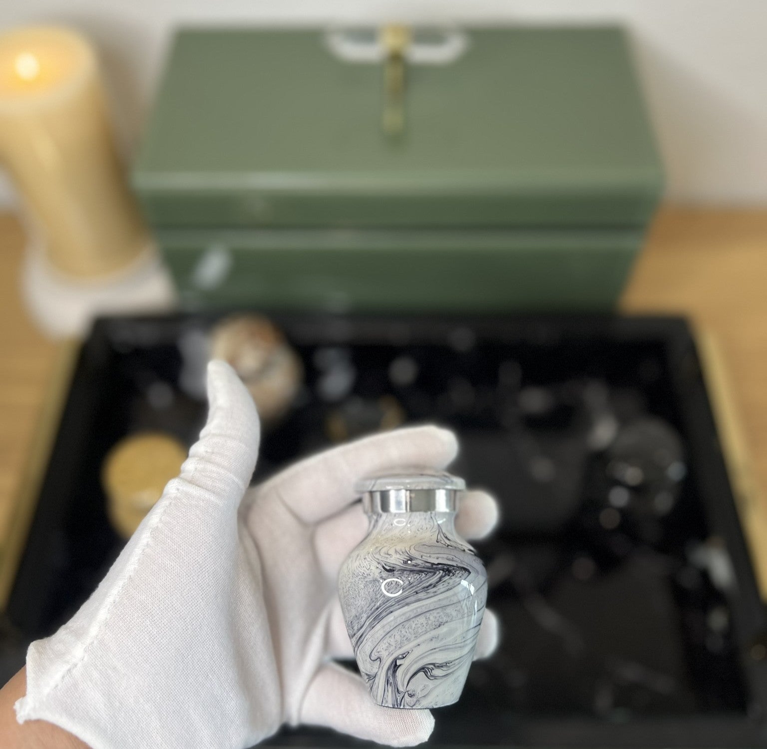 Premium Marble Finish Keepsake Single in Velvet Box for Ashes Adult male - Keepsakes for human ashes adult female - Black/Silver/Gray/Sand